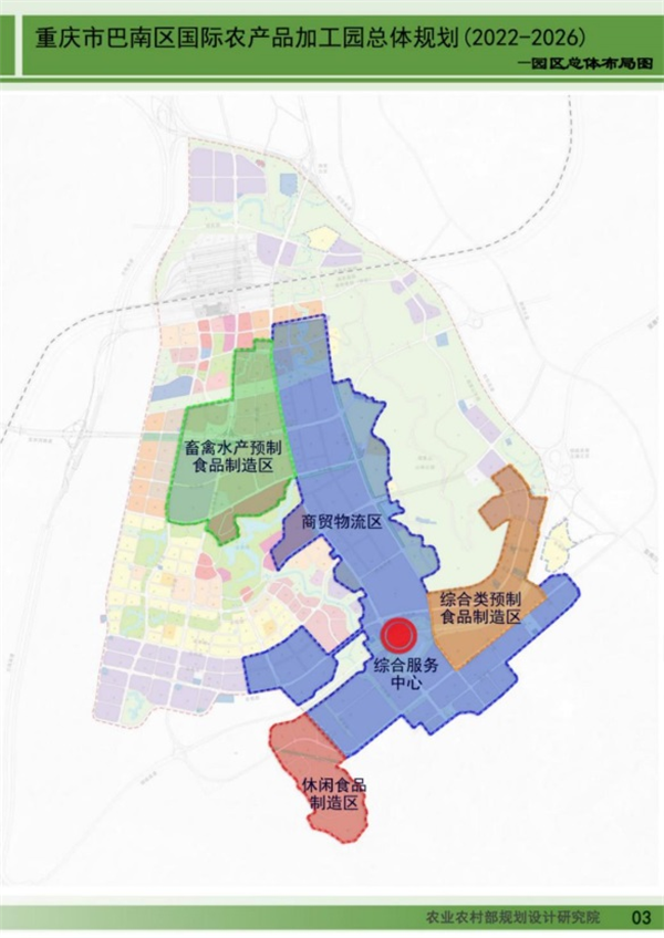 为贯彻落实习近平总书记对重庆提出的坚持“两点”定位、“两地”“两高”目标,发挥“三个作用”和推动成渝地区双城经济圈建设等重要指示要求,《重庆市巴南区国际农产品加工园总体规划》立足巴南区特色产业优势和战略区位条件,依托重庆市公路物流基地,聚集资源要素,聚合服务功能,构建“一心四区”的总体布局,着力实施农产品加工强链补链、农业对外合作促进、特色品牌培育、基础设施建设、人才引进培育、城乡融合发展示范六大工程,谋划实施重点项目29个,总投资174.2亿元,打造集加工、贸易、物流、综合服务于一体的国际农产品加工园区,引领巴南农业农村现代化发展,为中国(重庆)国际农产品加工产业园提供坚强支撑,促进我国西南地区农产品加工业高质量发展。