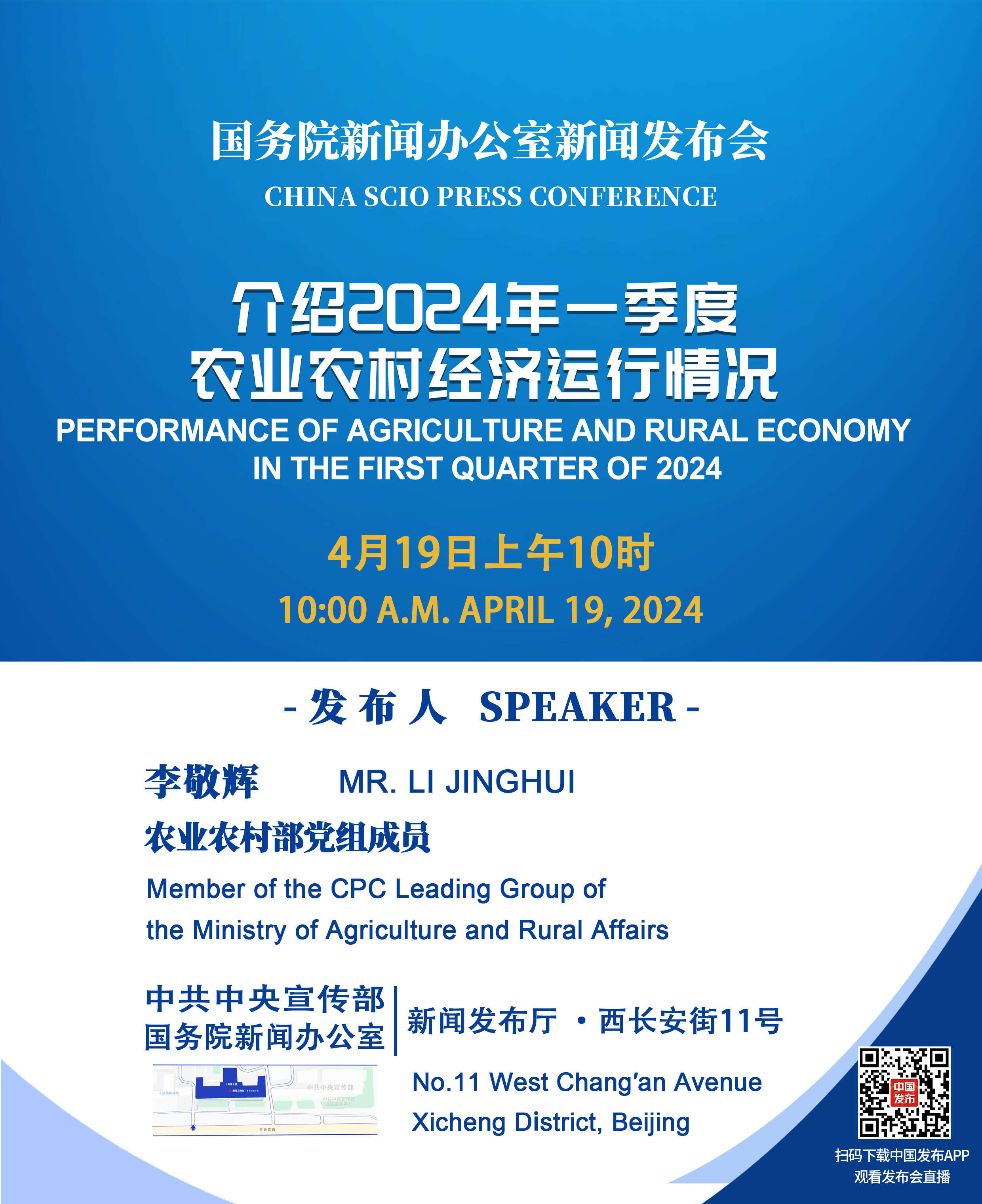 国新办将举行2024年一季度农业农村经济运行情况新闻发布会