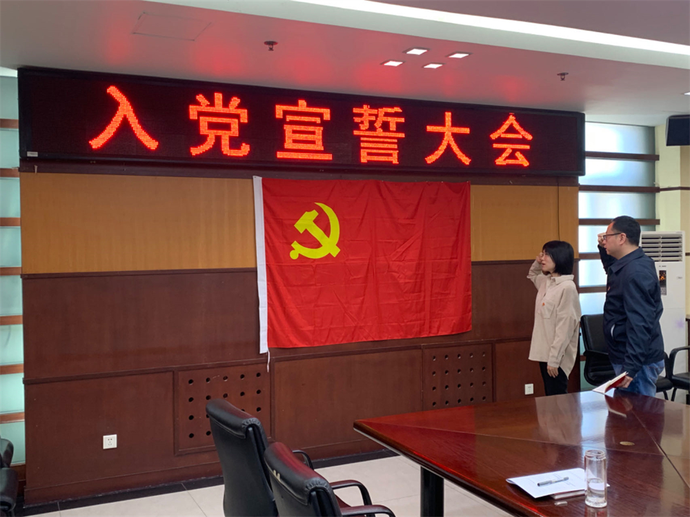 会上,党支部按照规定程序举行入党宣誓大会,预备党员白茜面向党旗庄严宣誓。