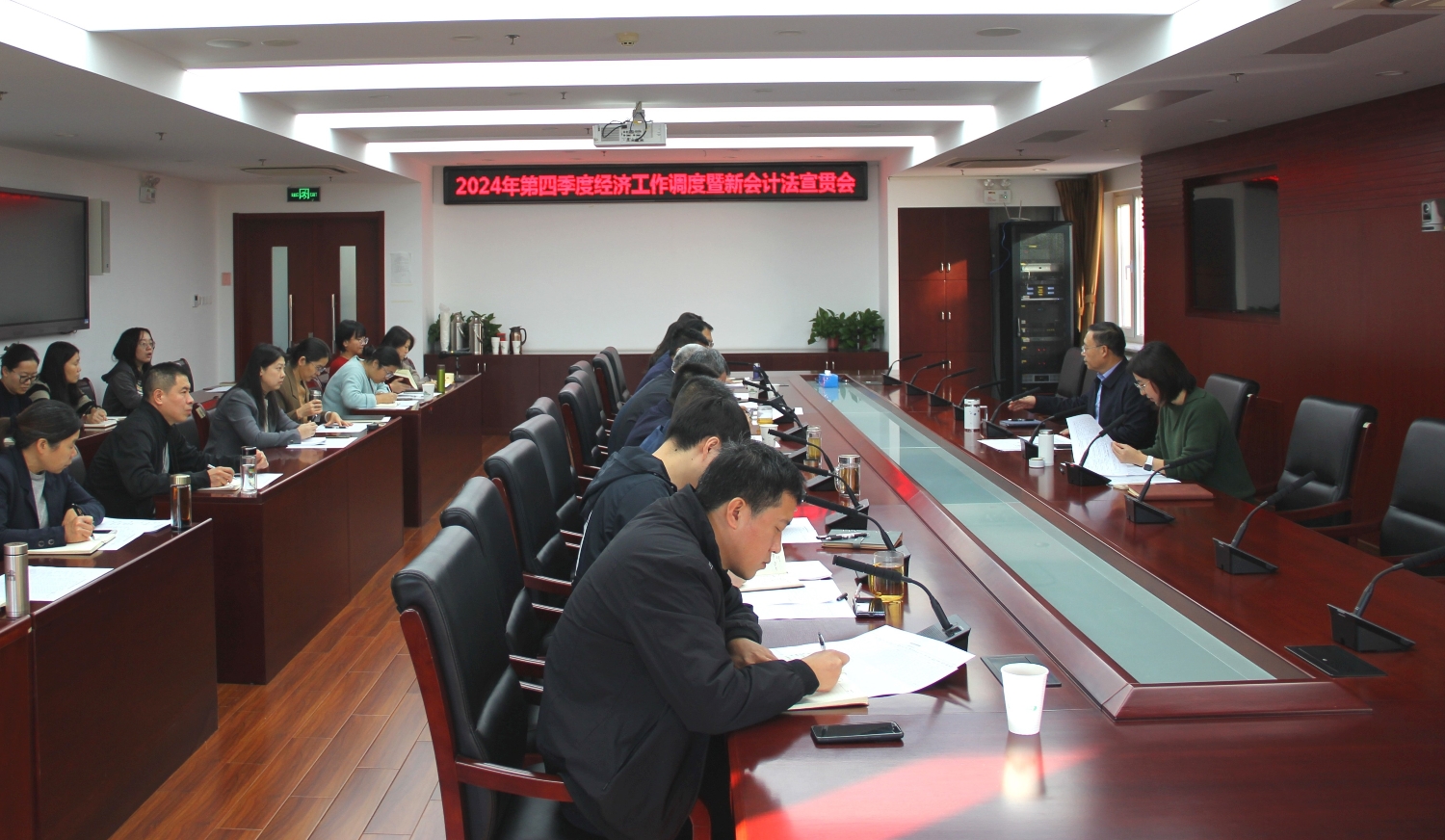 11月27日,我院召开2024年第四季度经济工作调度暨新会计法宣贯会,分析当前经济形势,解读新会计法,部署相关经济工作。张辉院长出席会议并讲话,沈玉君副院长主持会议,各部门主要负责人和相关人员参加会议。
