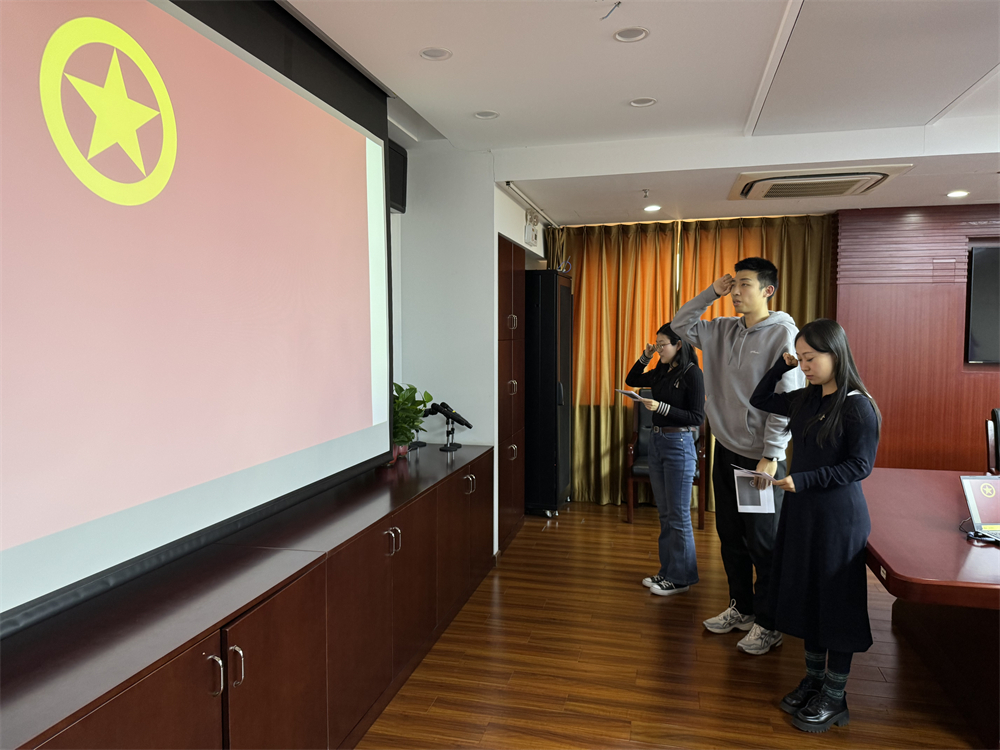 会议最后,共青团员在团旗下重温入团誓词,铿锵有力的入团誓词激励着团员青年牢记初心使命、践行责任担当。