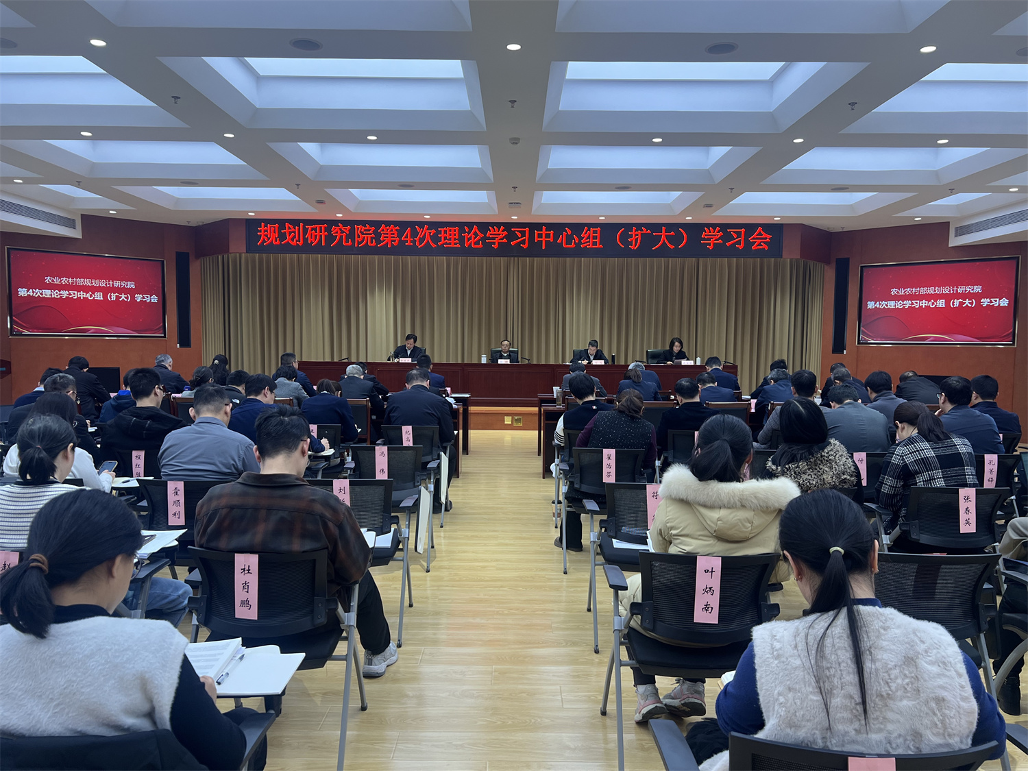 12月23-26日,我院召开2024年第4次理论学习中心组(扩大)学习会,采取个人自学、集中交流研讨等形式,深入学习中央经济工作会议、中央农村工作会议、全国农业农村厅局长会议精神,传达学习张兴旺副部长来我院调研指示精神,总结全年工作成效,谋划明年重点工作。张辉院长主持会议并作总结发言,院领导班子成员结合学习体会分别作了交流发言,各部门作了总结汇报,院中层干部、支部委员、企业及学会负责人参加会议。