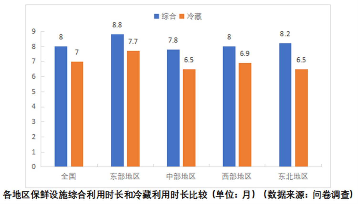 2.系统设计了产地冷链设施建设和经营情况调查问卷并进行大样本调查,优选出冷链设施平均周转次数、农产品损失率、货架期延长天数和经营收益增长率等4个关键评价指标,对全国产地冷链设施建设经营主体的经营服务情况和成效进行了评价分析。2023年,全国产地仓储保鲜设施存量30742.7万立方米,仓储保鲜能力6694.5万吨。全国产地仓储冷链保鲜设施年均周转5次,设施使用后农产品平均损失率从19.7%下降到7.1%,贮藏期普遍延长69天,收益增长率29.3%,为农产品上行和农业产业增值增效产生了积极的推动作用。