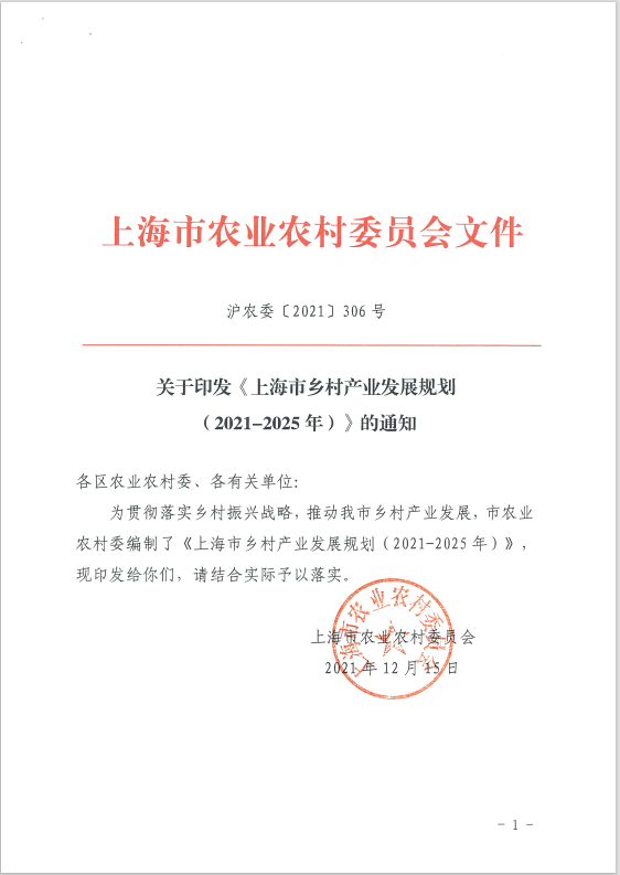 我院编制的《上海市乡村产业发展规划(2021-2025年)》正式发布