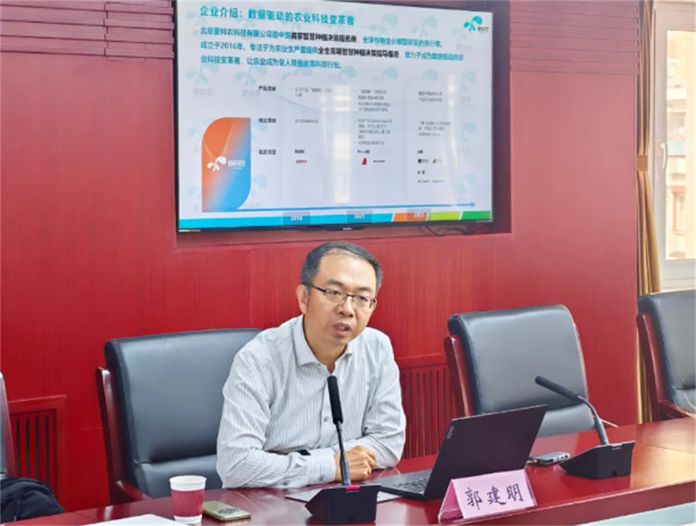 为深入探索农业新质生产力赋能农业高质量发展,4月12日,我院建筑所邀请北京爱科农科技有限公司(以下简称“爱科农公司”)创始人、CEO郭建明博士来院进行《数农融合,着力打造智慧农业“数字大脑”》专题讲座,建筑所、信息所及中宇瑞德公司高标准农田项目团队参加。