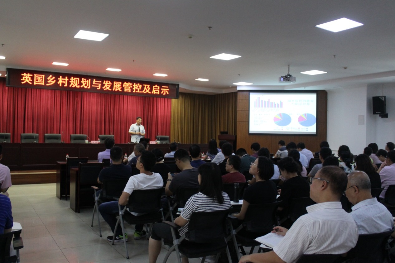 于立教授重点讲解了英国乡村发展政策及农村土地保护政策和措施的演变、英国城乡规划体系的历史沿革、英国的城乡一体化、英国对环境和乡村特色的保护、21世纪英国乡村规划的重要原则、“邻里规划”设计导则与实践、乡村规划的编制程序、英国乡村地区存在的主要问题、中国乡村振兴政策和制度创新的初步思考等内容,报告引起了广大职工的深入思考,受到了广泛好评。