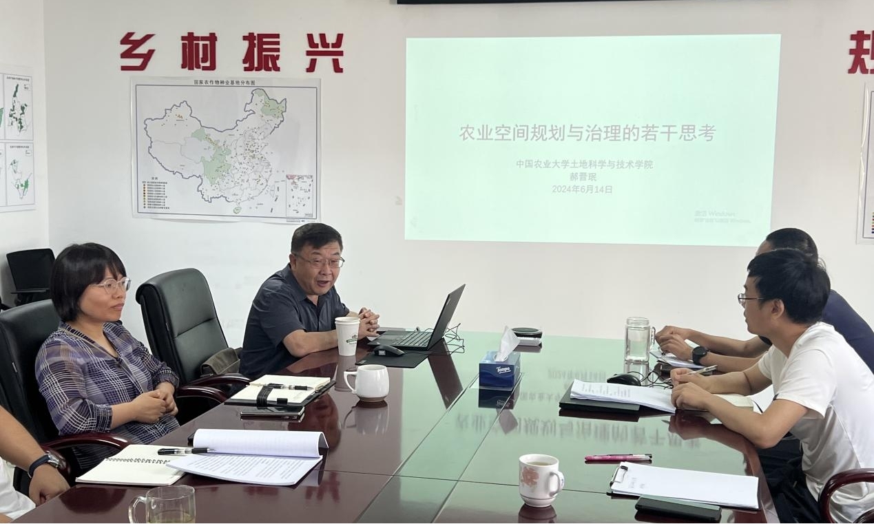 随后,参会人员集中聆听了中国农业大学郝晋珉教授的专题报告“农业空间规划与治理的若干思考”,并进行了充分的交流和讨论。报告从国土空间规划体系与再思考、农业空间与乡镇国土空间规划、全域土地综合整治、农业产业与土地利用等四个方面,深刻阐述了五级三类国土空间规划体系的政策要求和内涵要义,深度解析了农业空间规划的编制要求和难点,并围绕全域土地综合整治和农业产业用地等方面,提出农业空间用地转换和指标调整的方法和路径。