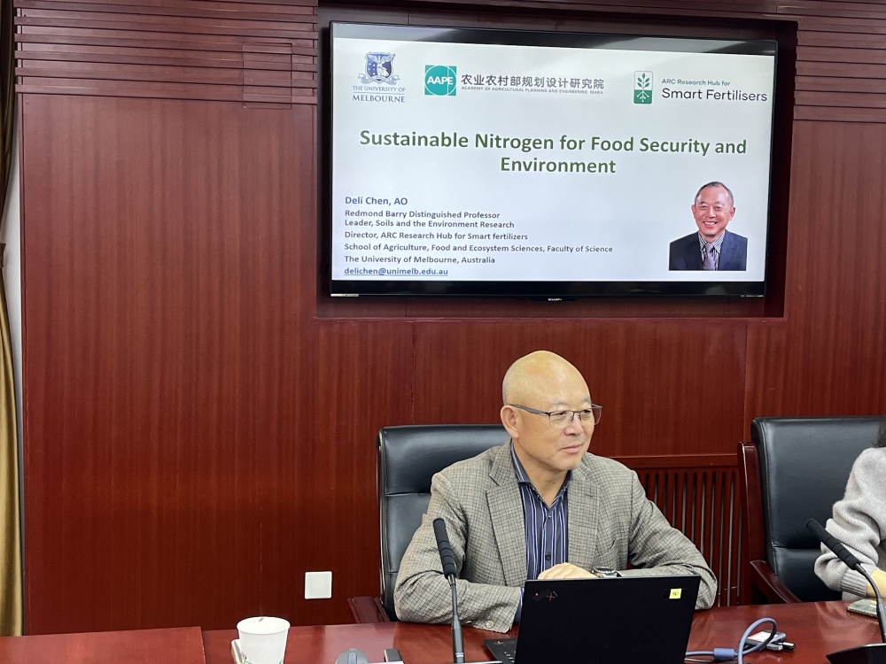 Deli Chen教授分享了关于农业生态系统中氮素转化路径、氮素高效施用模型与管理策略、温室气体快速监测等领域的一些思考与探索。参训人员积极思考、互动交流,对氮素管理在当前农业生产中的应用、粮食生产和环境可持续发展路径与措施等问题进行了深入探讨,为我院在农业绿色发展政策创设、技术创新、产业化应用等方面的研究与实践提供了新的思路和启示。