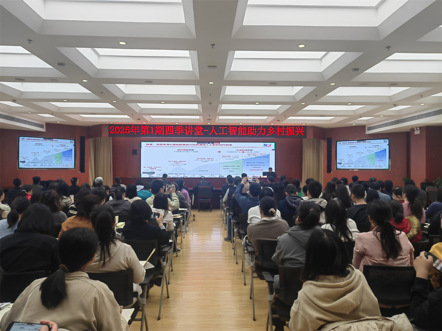 为深化人工智能技术与农业农村融合发展,落实2025年重点工作部署会精神, 3月4日,我院举办了“四季讲堂”系列之“人工智能助力乡村振兴”专题讲座。特邀中国电信集团农业农村事业部架构师郭磊担任主讲,院领导及干部职工170余人参会。