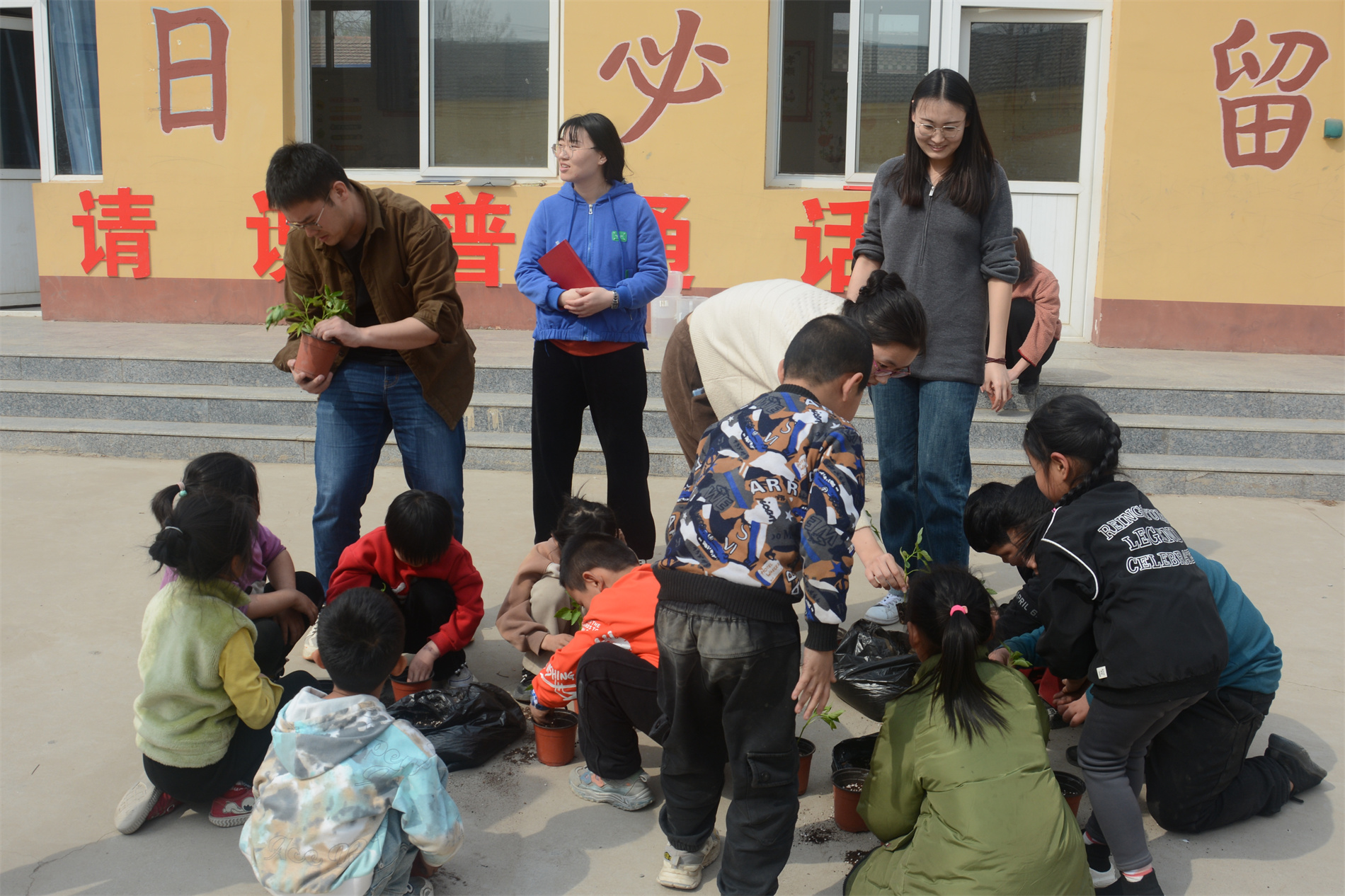 设施科普进校园志愿服务活动中,青年干部们赴前刘官营村小学为小朋友作了题为“国之大者入童心 设施农业进校园”的科普讲座,介绍了蔬菜的种植和生长知识,并带领孩子们种植七彩椒,让孩子们了解园艺蔬菜的种植技术知识,宣传了国家粮食安全和“向设施农业要食物”的重大意义。