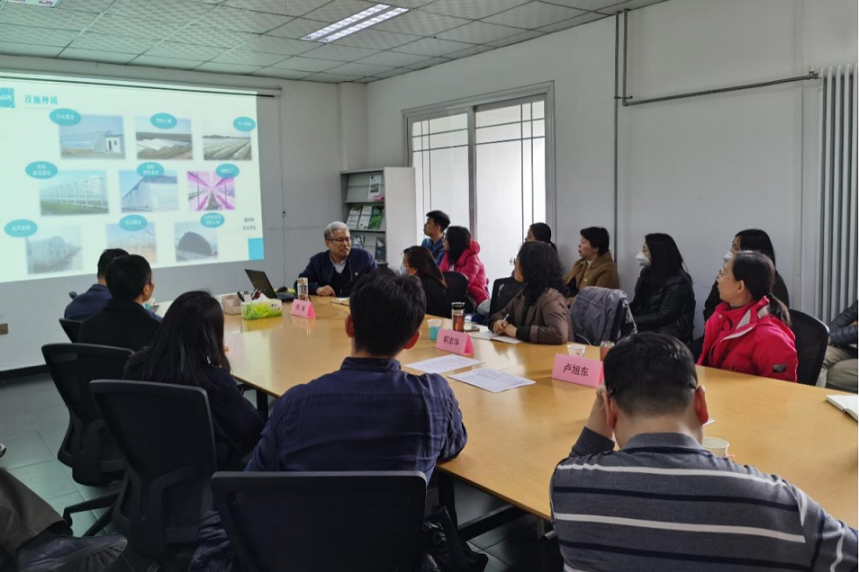 大家对永清基地进行实地调研,深入了解基地设施建设、实验温室运行、食堂管理、安全措施等情况,详细了解近期急需维修维护项目。座谈会上,党员干部集中学习了习近平总书记关于“大食物观”“向设施农业要食物”等重要论述。设施所所长丁小明同志图文并茂的讲解了现代设施农业的主要内容以及温室技术装备国内外发展现状,探讨了戈壁盐碱地温室大棚建设、温室全产业链价值提升和数字化智能化发展路径。大家围绕如何发展现代设施农业,更好保障服务基地运行开展了沟通交流。