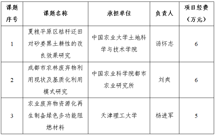 农业农村部农业废弃物能源化利用重点实验室2023年度开放课题立项公示